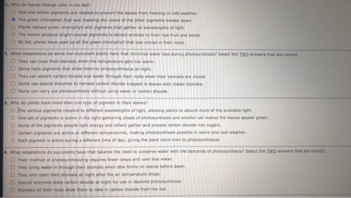 Solved 1 Why Do Leaves Change Color In The Fall Red And Chegg Com
